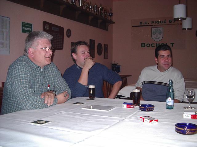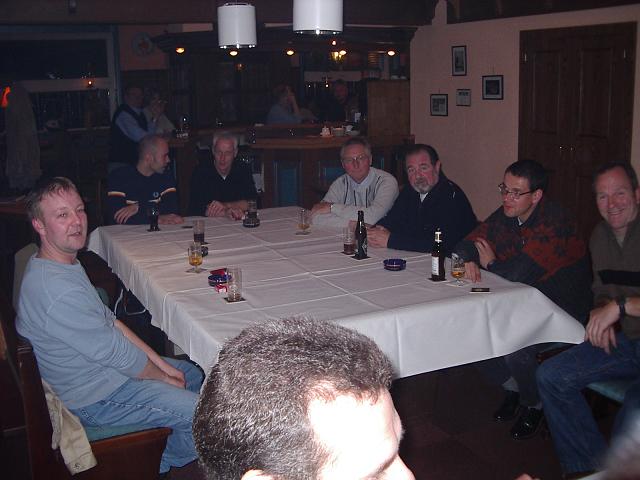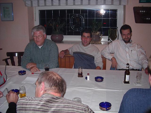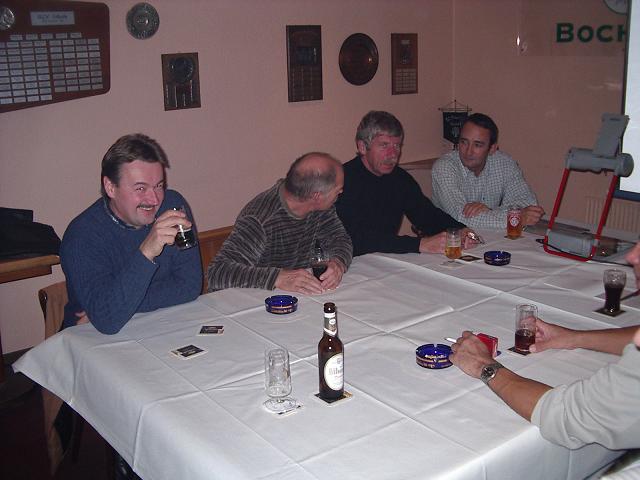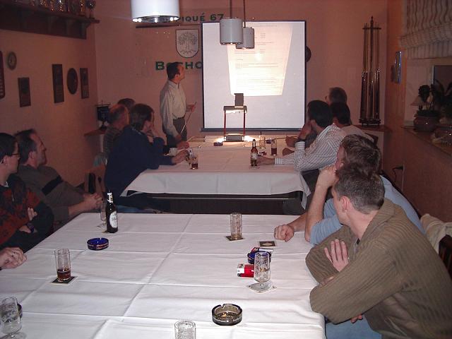 Ein Fachvortrag stand am 10.10.2003 um 20.00 Uhr auf dem Programm. Im Vereinslokal „Zur Glocke“ waren 14 Kollegen erschienen. Da uns der Saal, wegen einer Live-Musik Darbietung, an diesem Abend nicht zur Verfügung stand und der Vortrag in der Gaststube stattfinden musste, hatten wir, bedingt durch den Thekenbetrieb, leider ein akustisches Problem. Um sich den interessanten Vortrag mit dem Thema „Schwefelarme Bindersysteme“ anzuhören und somit Informationen für das tägliche Geschäft zu bekommen, mussten einige Kollegen schon genau hinhören. Herr Dipl.- Ing. Norbert Benz von der Fa. Hüttenes Albertus hielt diesen interessanten Vortrag. Er wurde dabei unterstützt von Herrn Dipl.- Ing. Joachim Turnau. In seinem Vortrag gab Herr Benz einen Einblick in die Zusammensetzung der verschiedenen Komponenten und deren Einfluß auf das Gussergebnis. Im Anschluss an diesen Vortrag wurde lebhaft diskutiert, denn auch in den Betrieben unserer Mitglieder gab oder gibt es zu diesem Thema das eine oder andere Problem. Kollege H. Purwin, der, bedingt durch die Abwesenheit des Vorsitzenden W. Kobs, den Abend leitete, bedankte sich bei den Vortragenden für ihre interessanten Ausführungen und die gute Bewirtung. Er wünschte ihnen noch eine gute Heimfahrt.