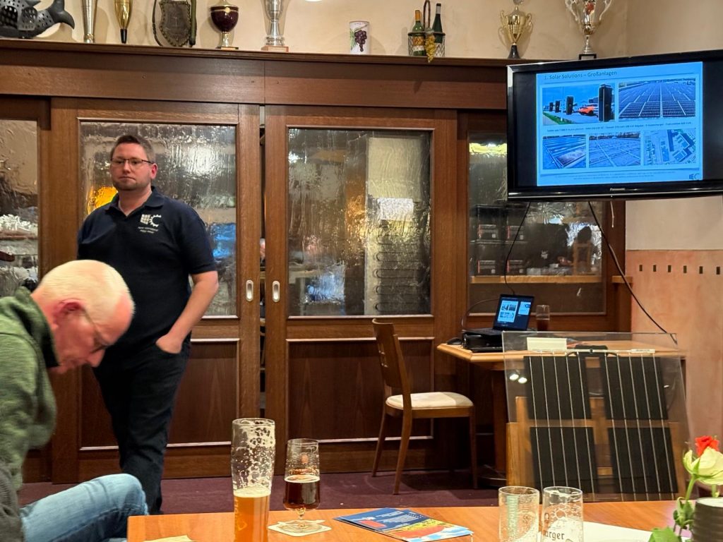 Ein herzliches „Dankeschön“ an alle Teilnehmer und natürlich an den Vortragenden Herrn Moser. Wer Interesse an einer Anschaffung von PV-Anlagen hat, sollte sich die beigefügte Präsentation anschauen oder direkt Herrn Moser kontaktieren. Nach dem Vortrag wurde wie immer noch Fingerfood angeboten und das eine oder andere Bier bei regen Diskussionen getrunken.